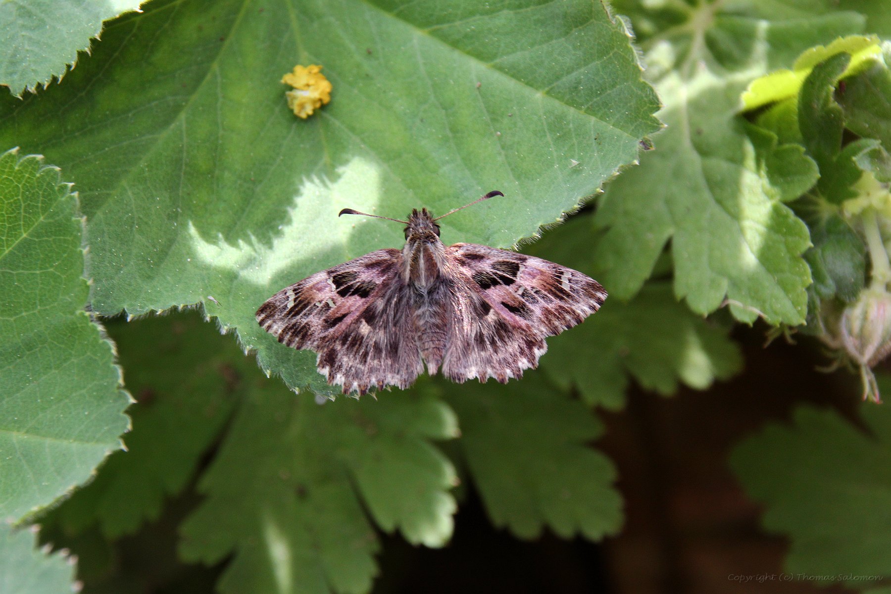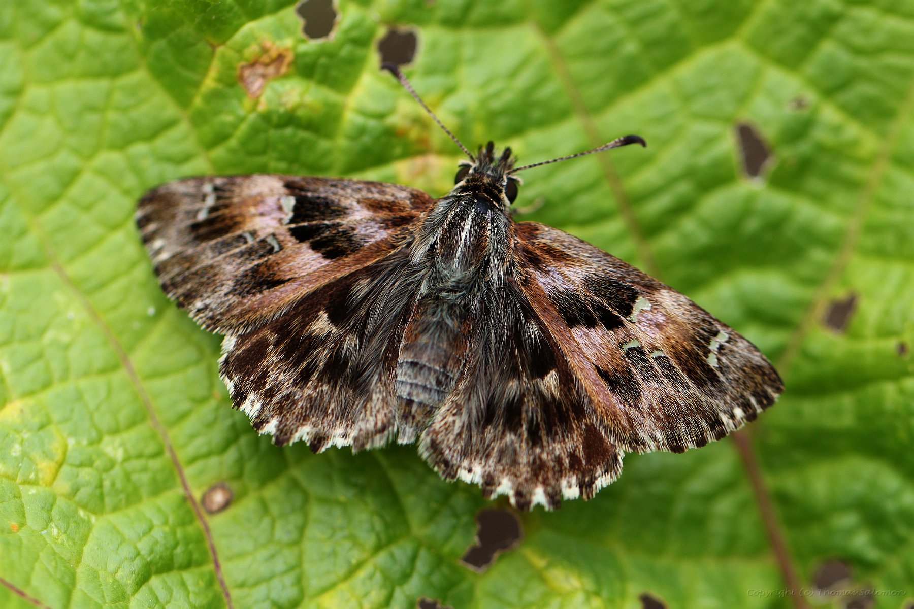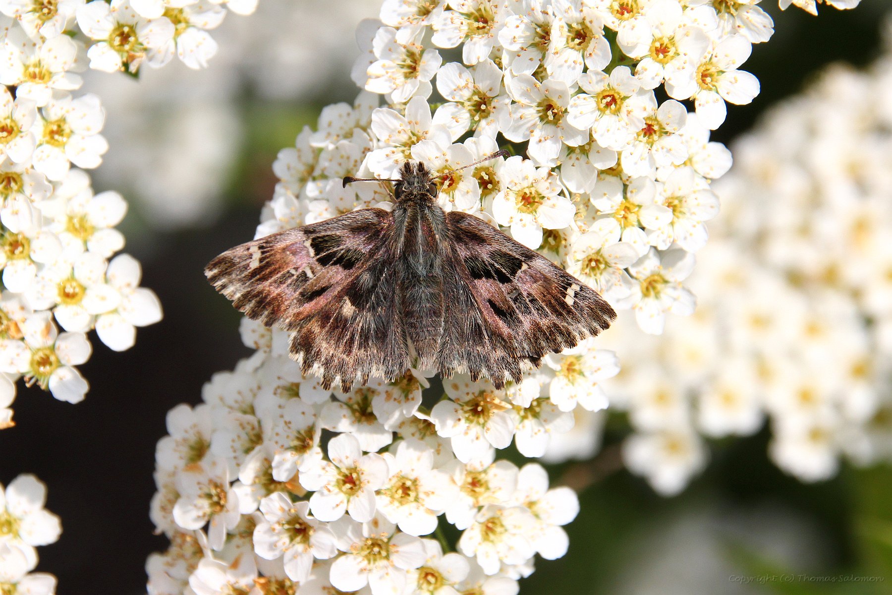 Ein frisch geschlüpfter Malven-Dickkopffalter (Carcharodus alceae) aus eigener Zucht.