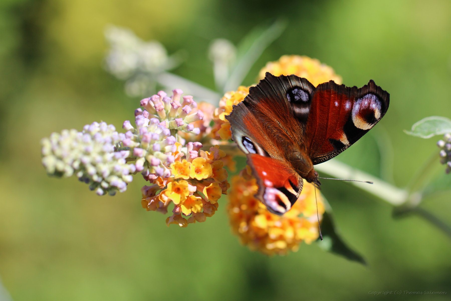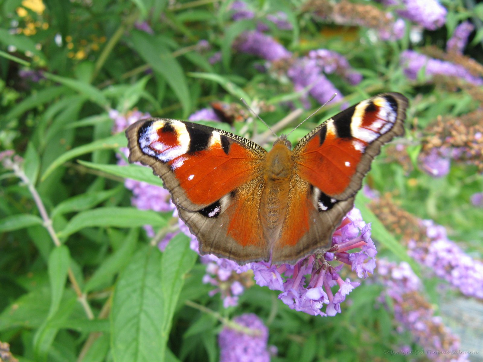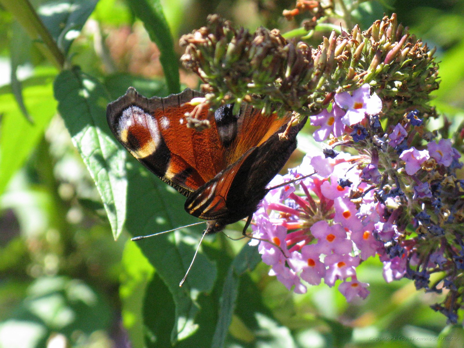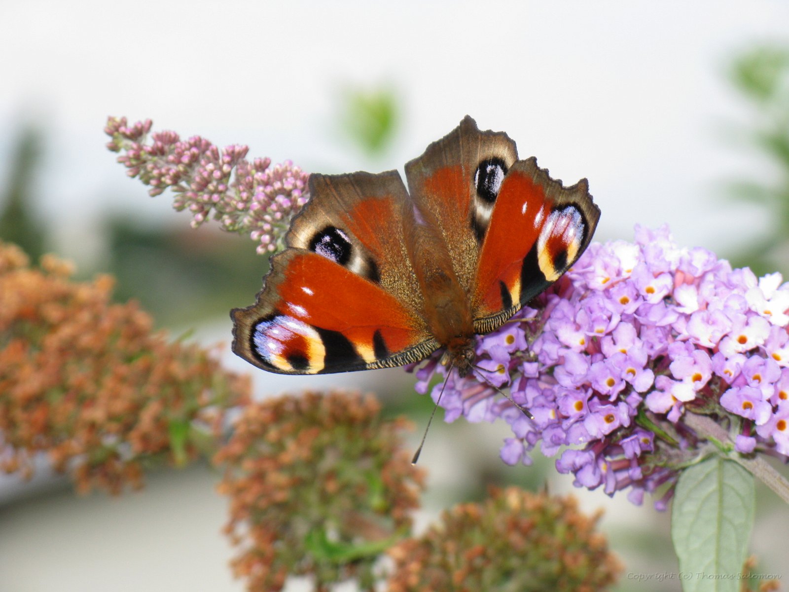 Ich habe das schöne Ergebnis von Aglais io an einer der letzten Blüten eines Sommerflieders abgesetzt.