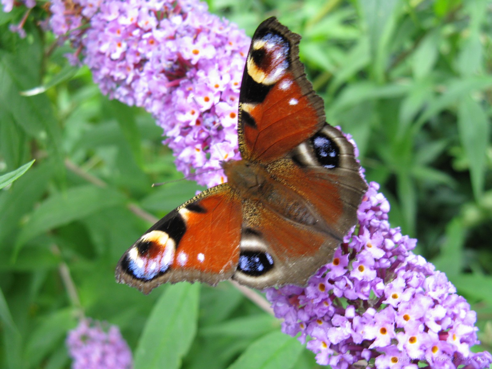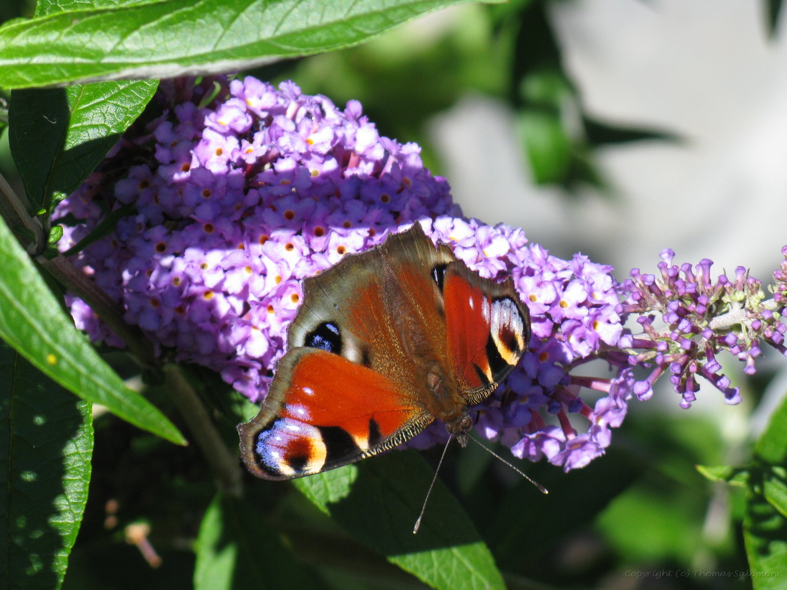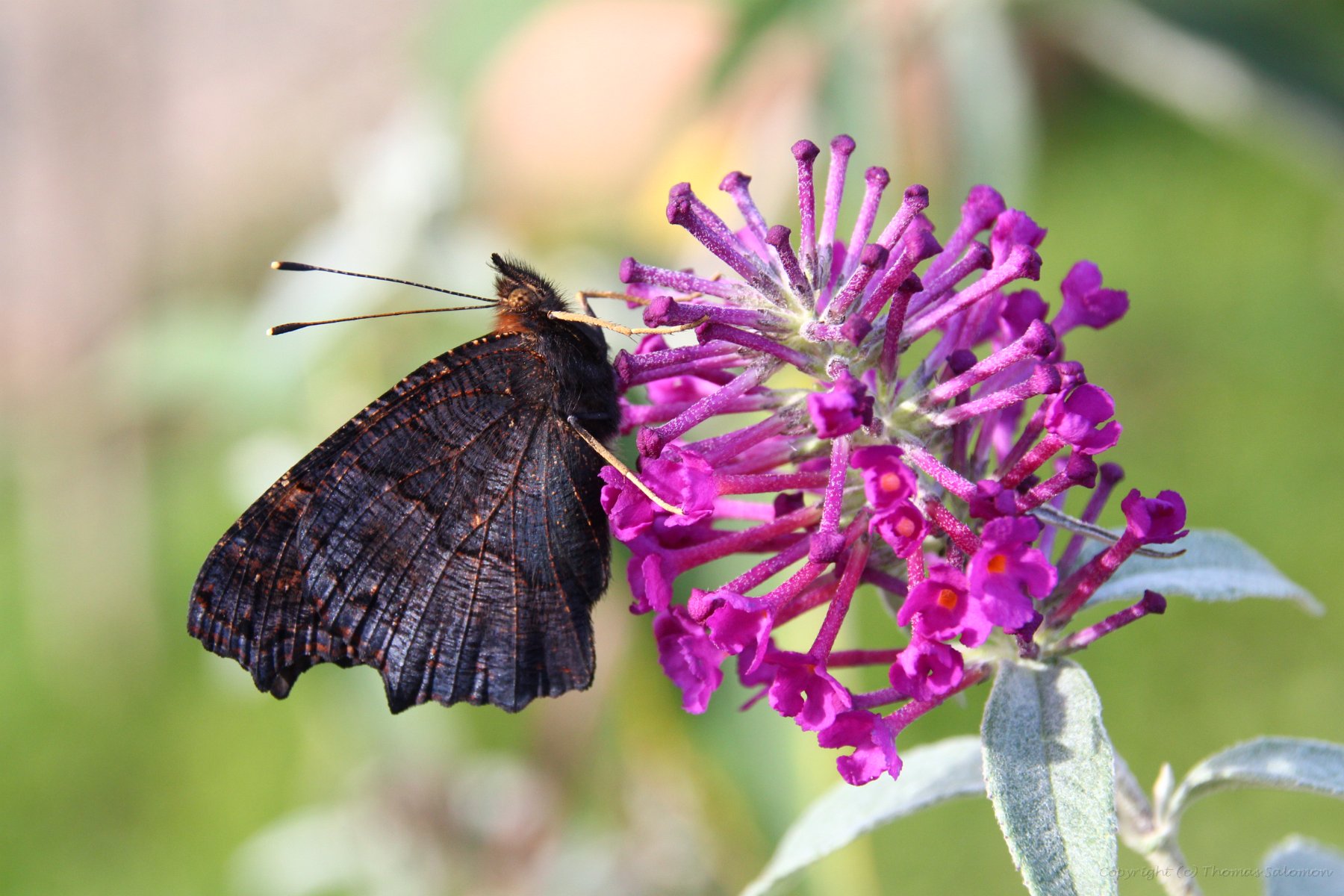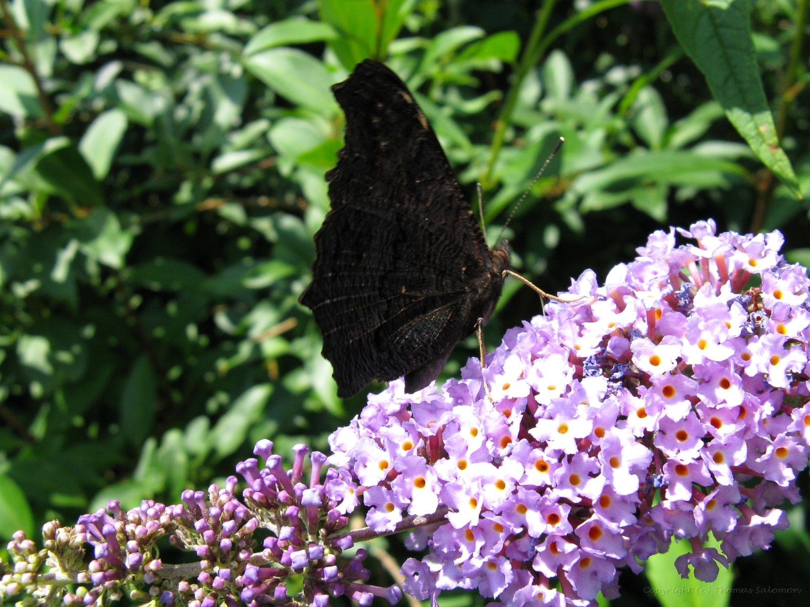Ich habe das schöne Ergebnis von Aglais io an einer der letzten Blüten eines Sommerflieders abgesetzt.