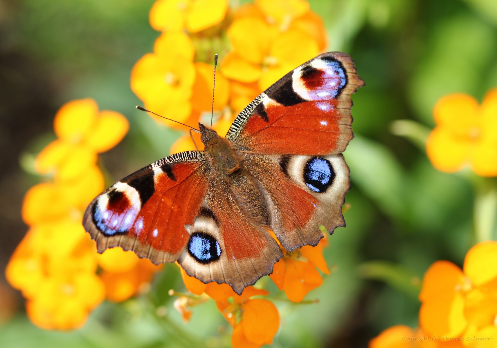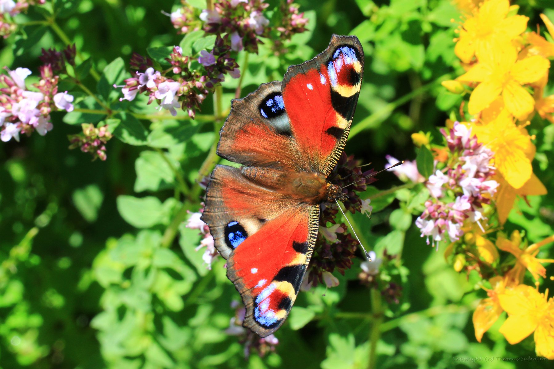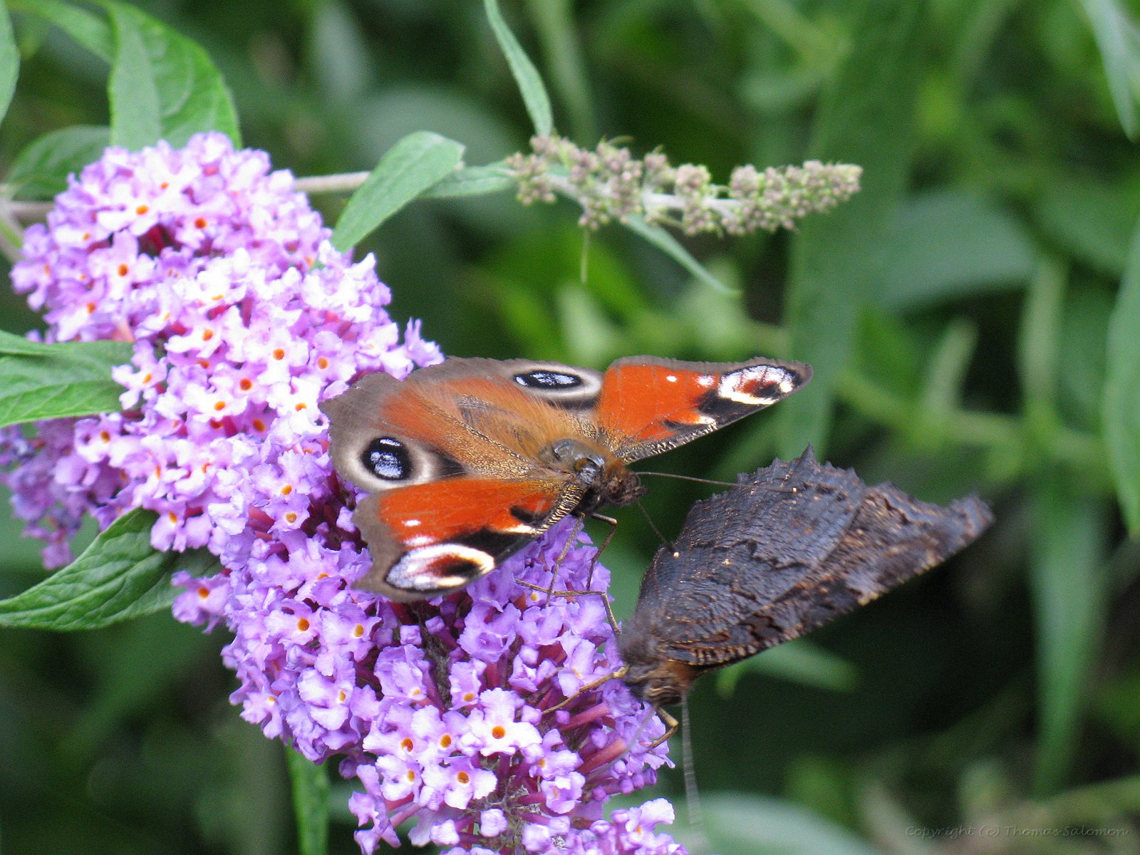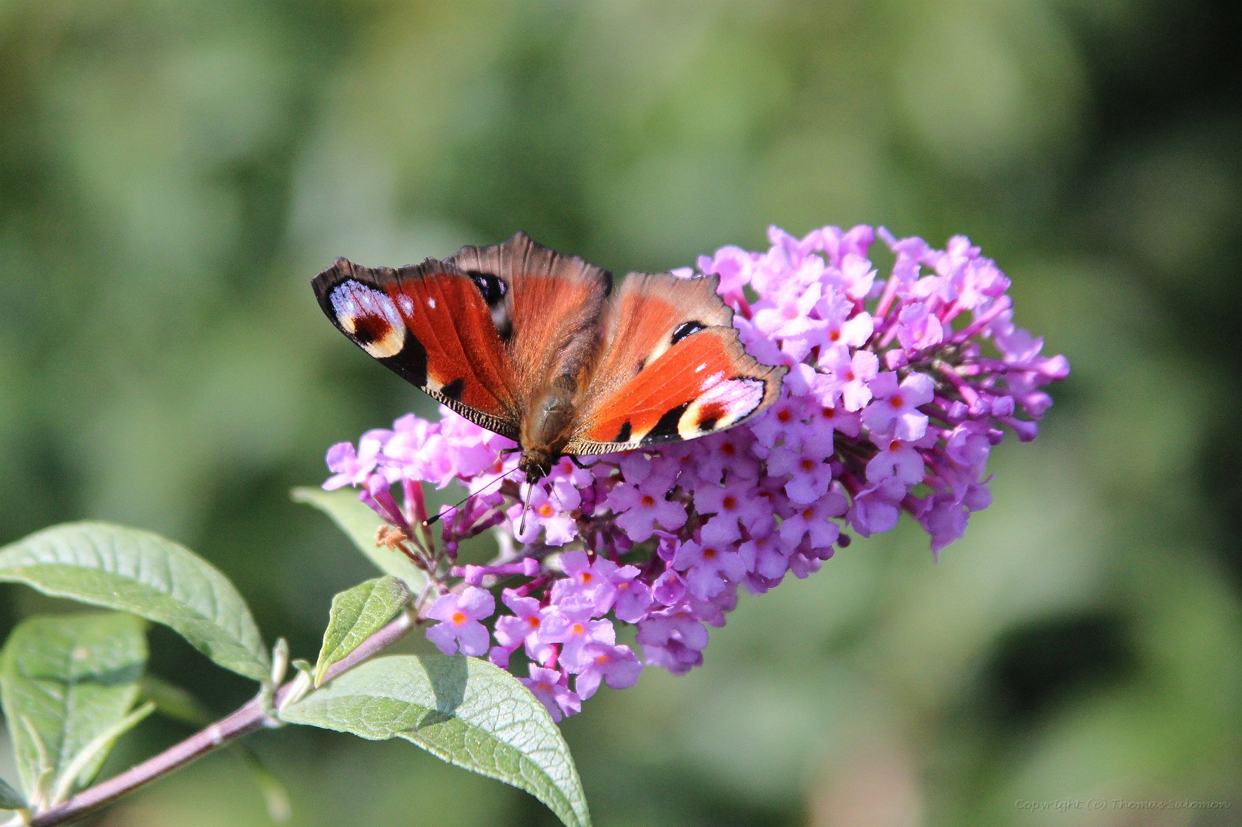 Ich habe das schöne Ergebnis von Aglais io an einer der letzten Blüten eines Sommerflieders abgesetzt.