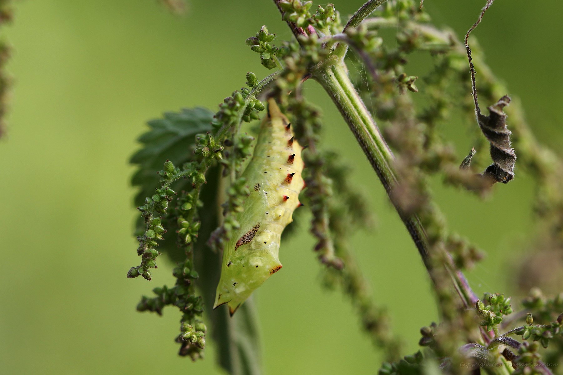 Hier eine Raupe des Tagpfauenauges.