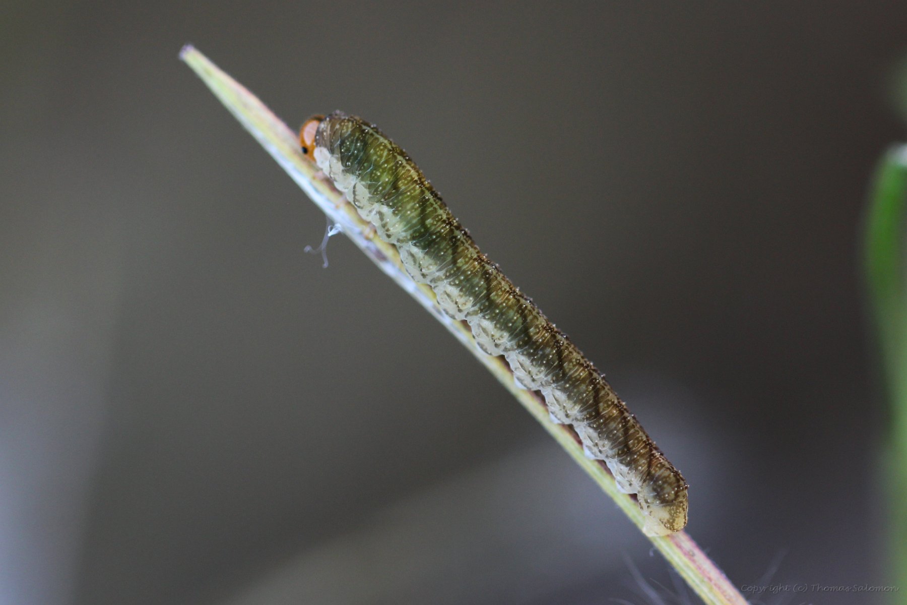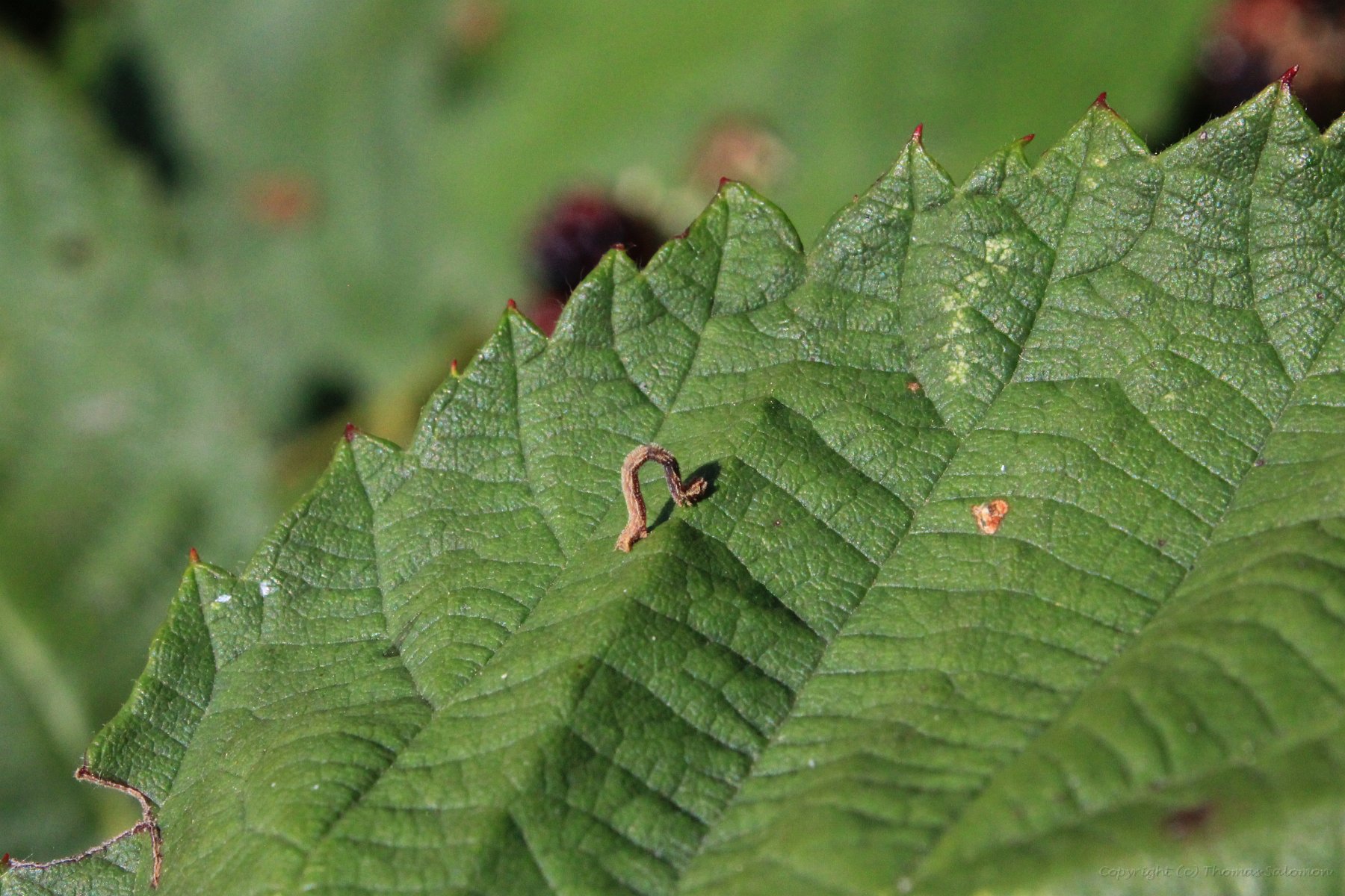 Ein winzigel Spannerräupchen (ca. 10 mm) |
