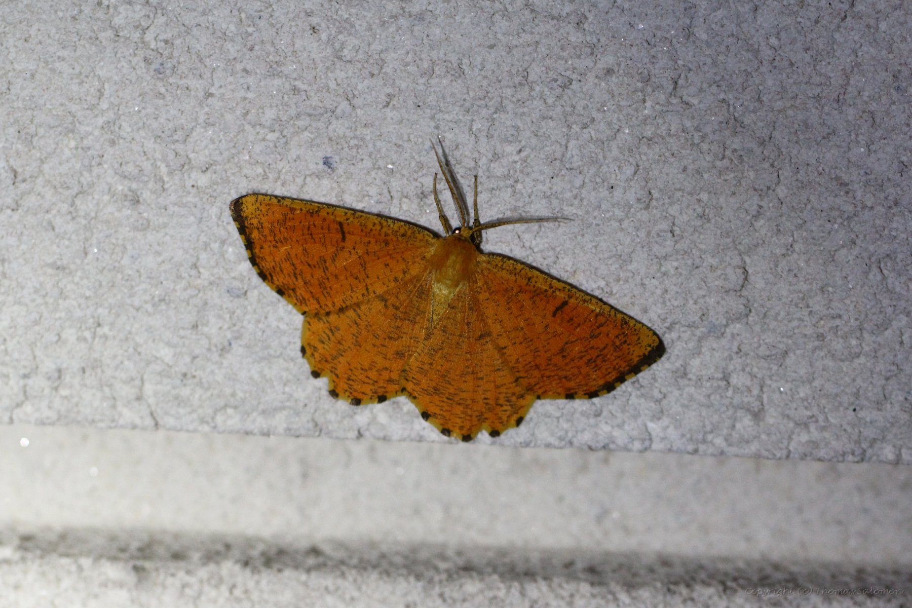 Ein Schlehenspanner (Angerona prunaria) an der Hauswand. |