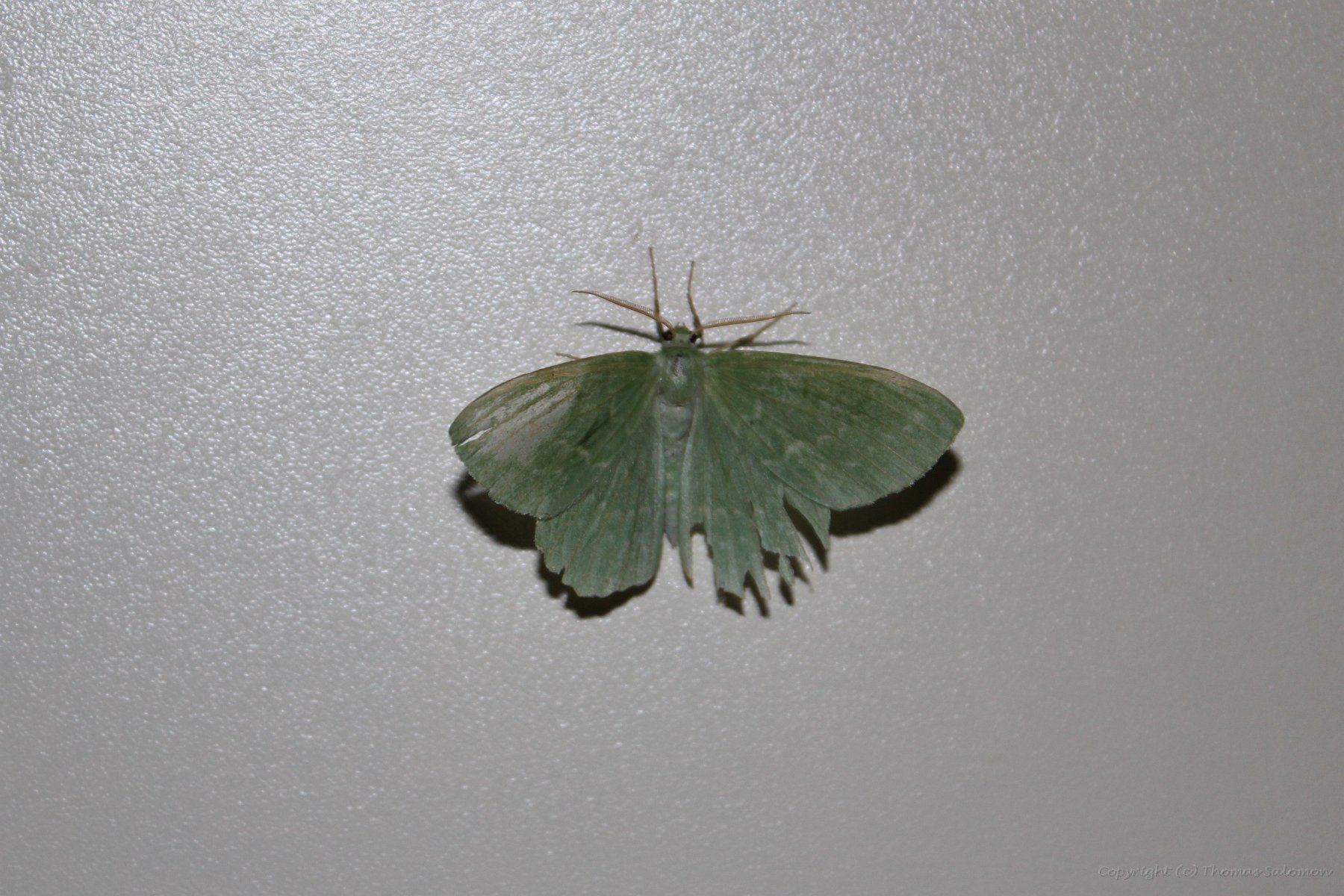 Ein grünes Blatt (Geometra papilionaria) - leider ziemlich abgeflogen... |
