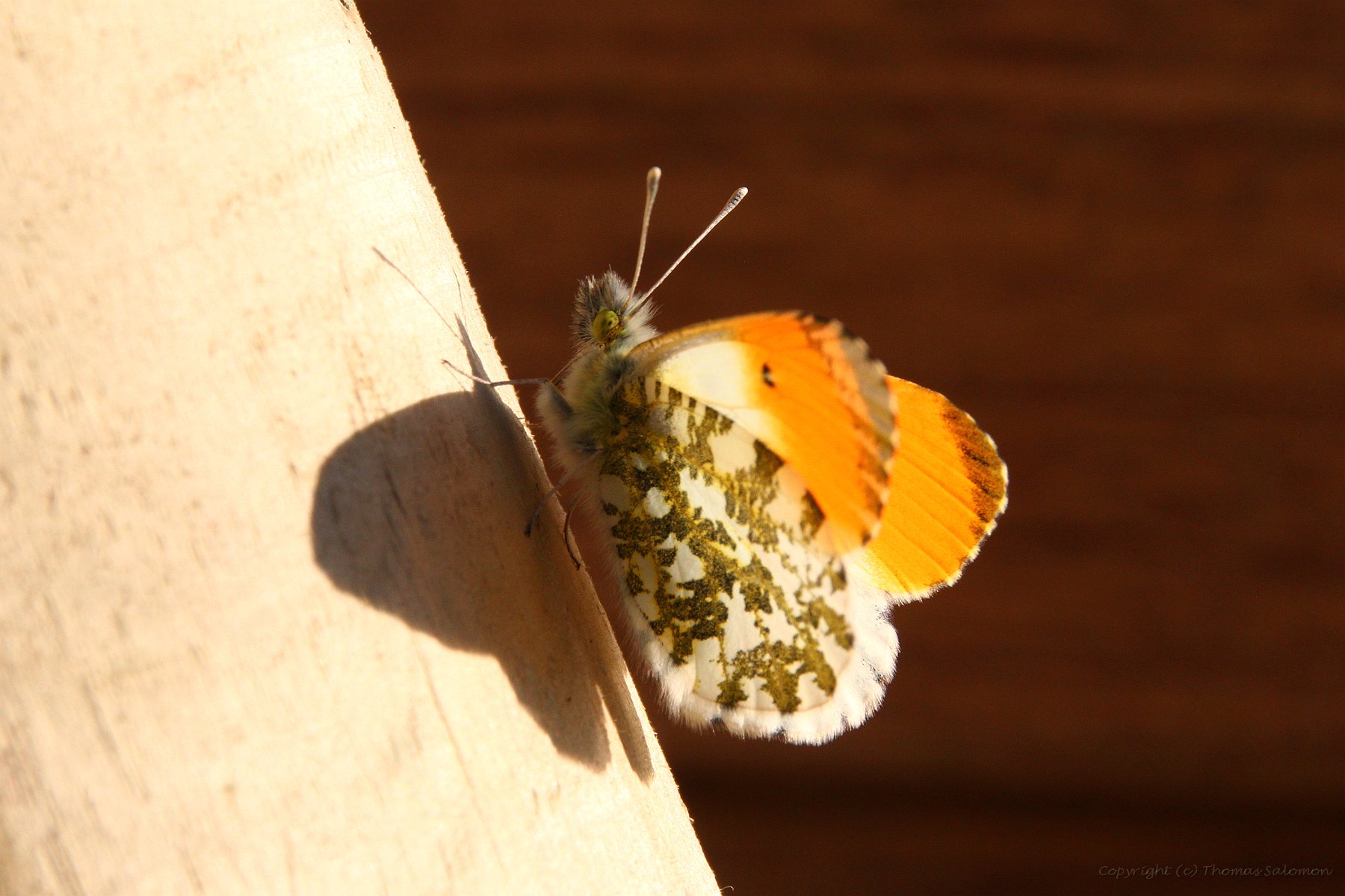 Ein frisch geschlüpfter männlicher Aurorafalter (Anthocharis Cardamines) |