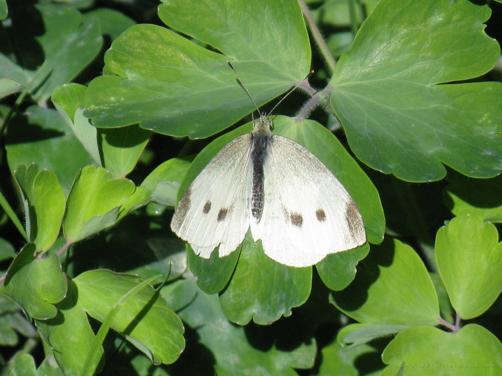 Pieris Rapae tarnt sich ein eine weißen Tulpe