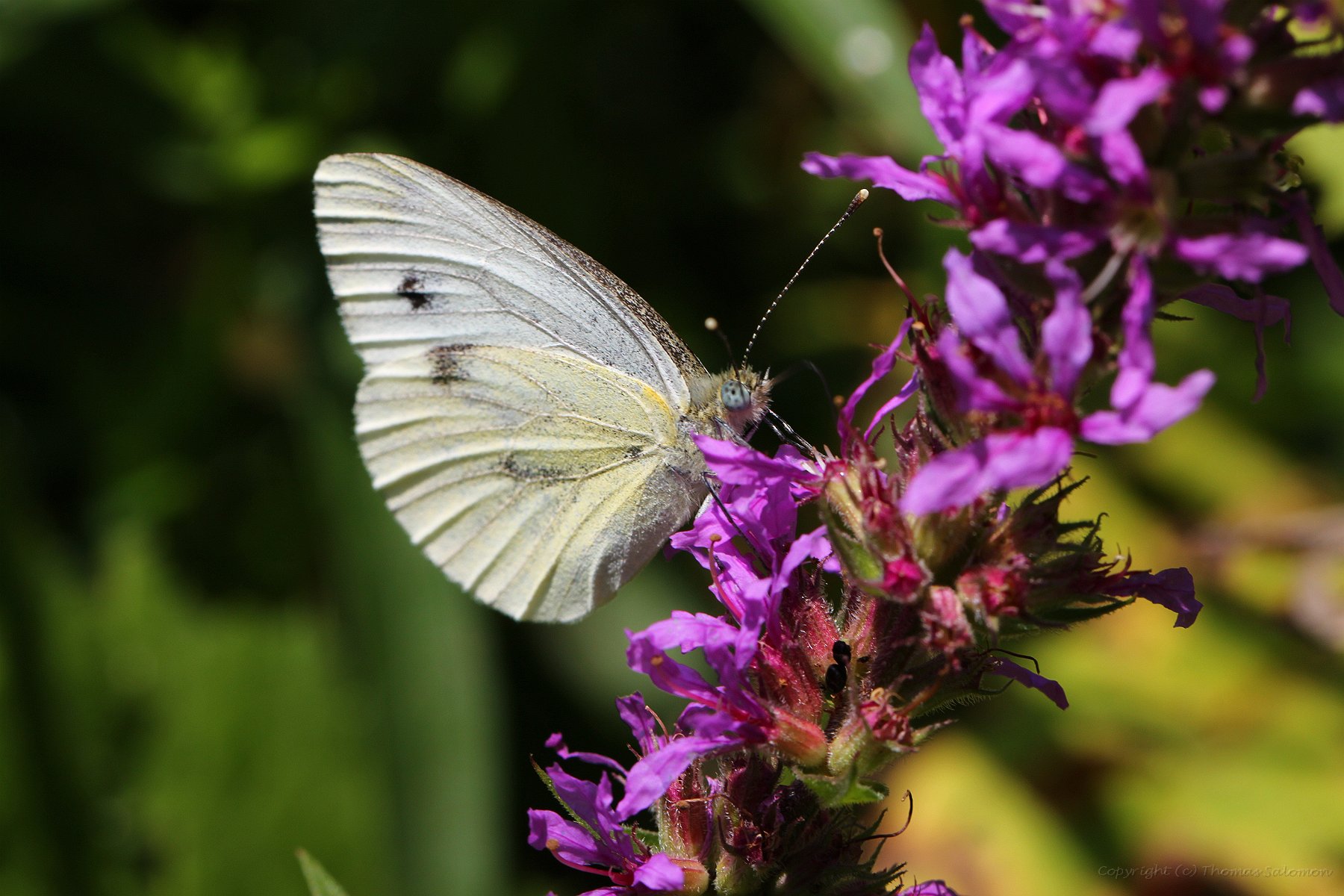 Ein Kohlweißling (Pieris Brassicae) saugt an Blutweiderich