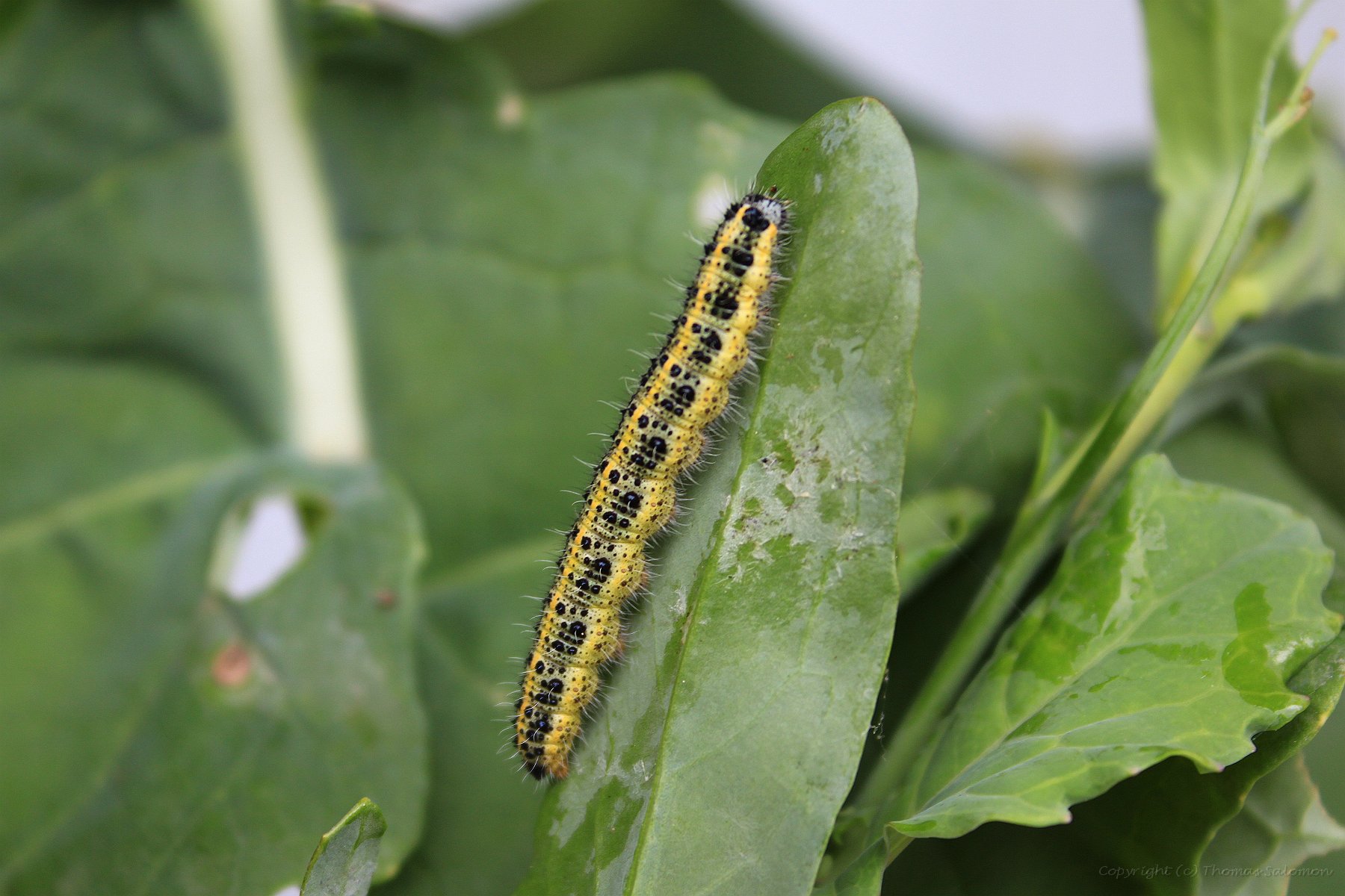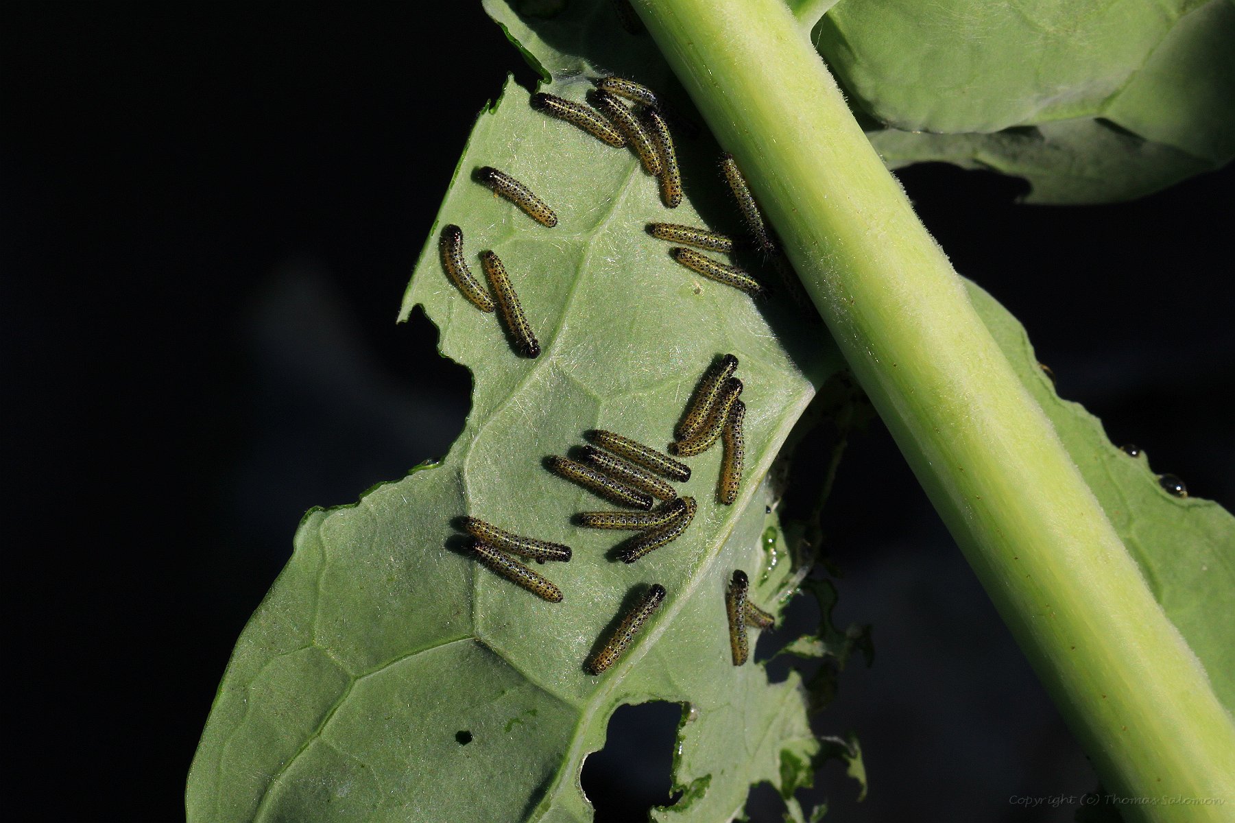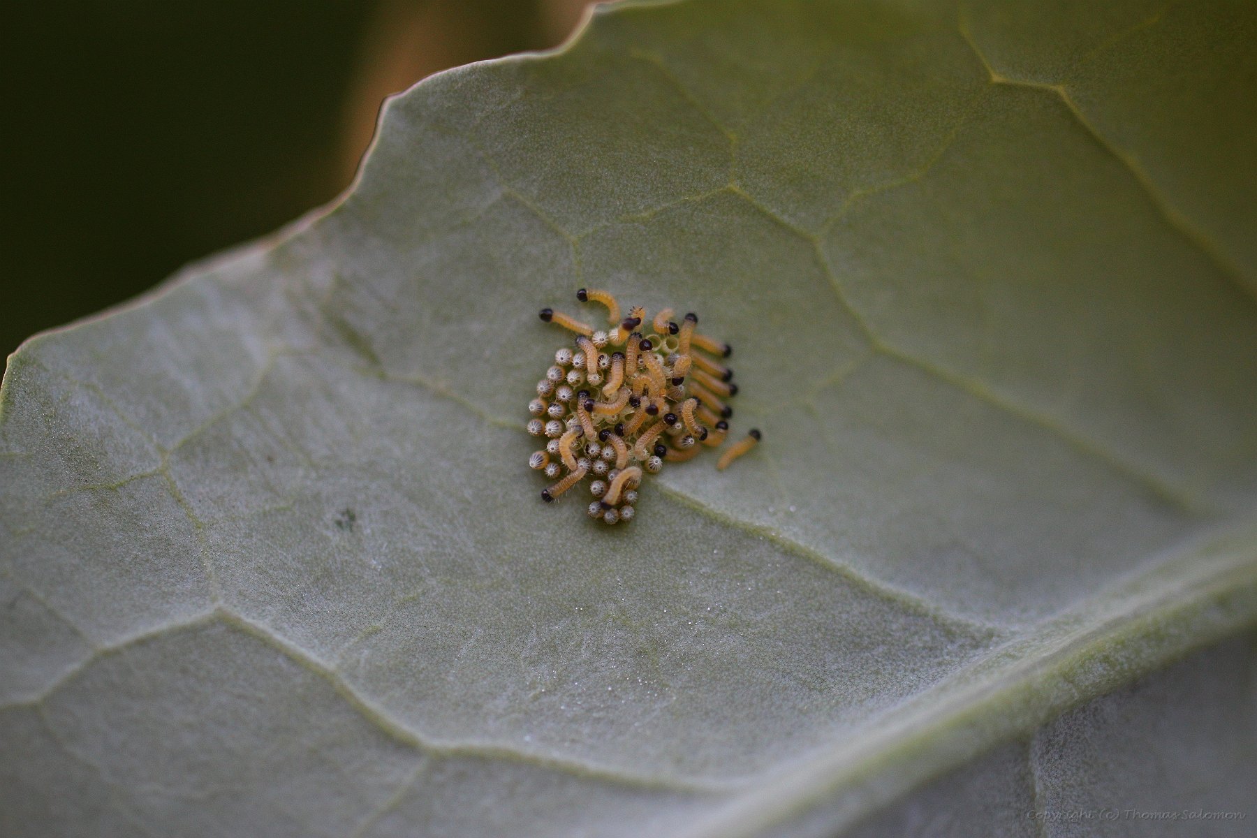 Kleine Räupchen (ca. 1 cm groß) von Pieris Brassicae
