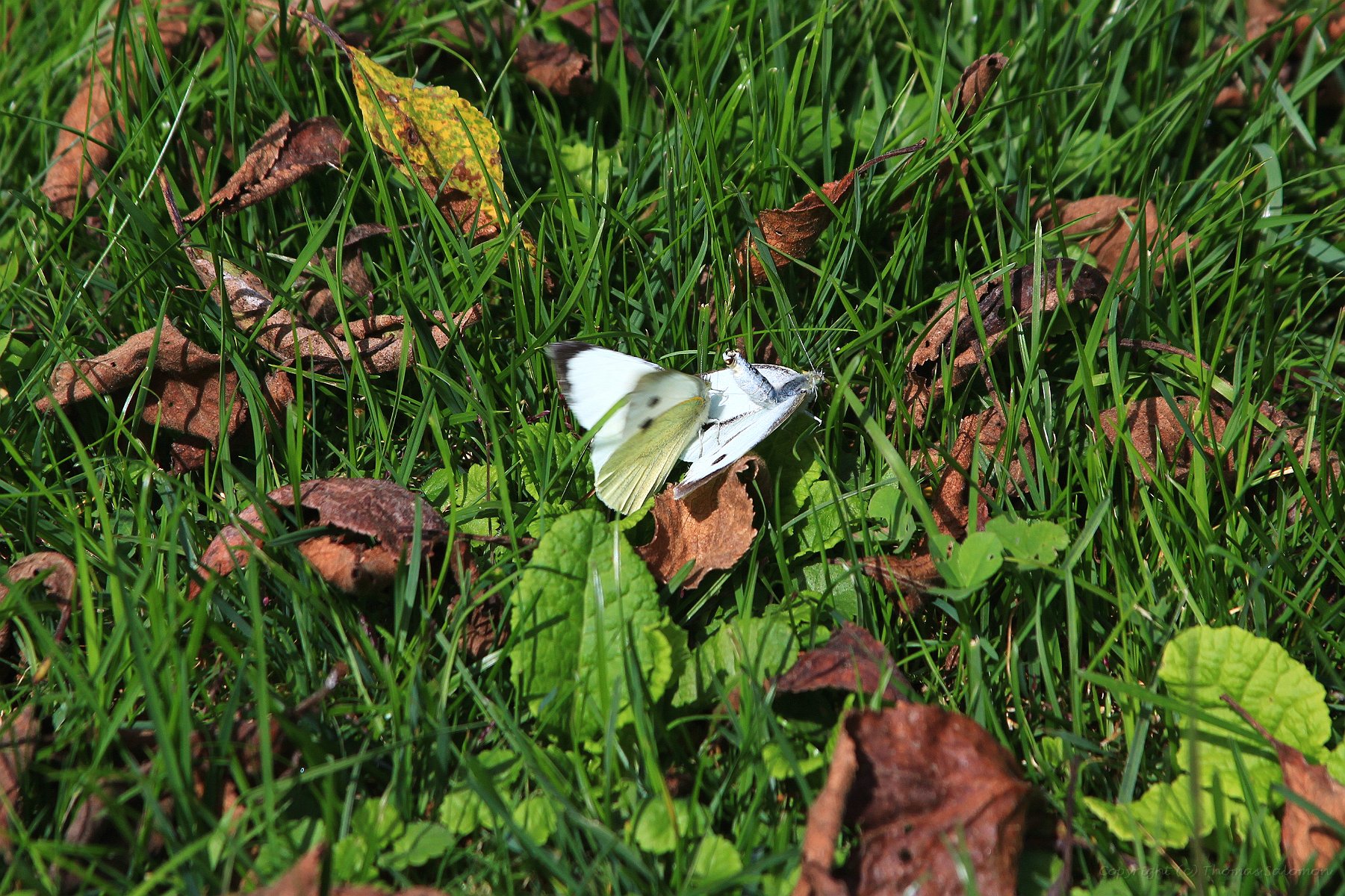 Ein weiteres Päärchen von Pieris rapae (kleiner Kohlweißling) bei der Paarung