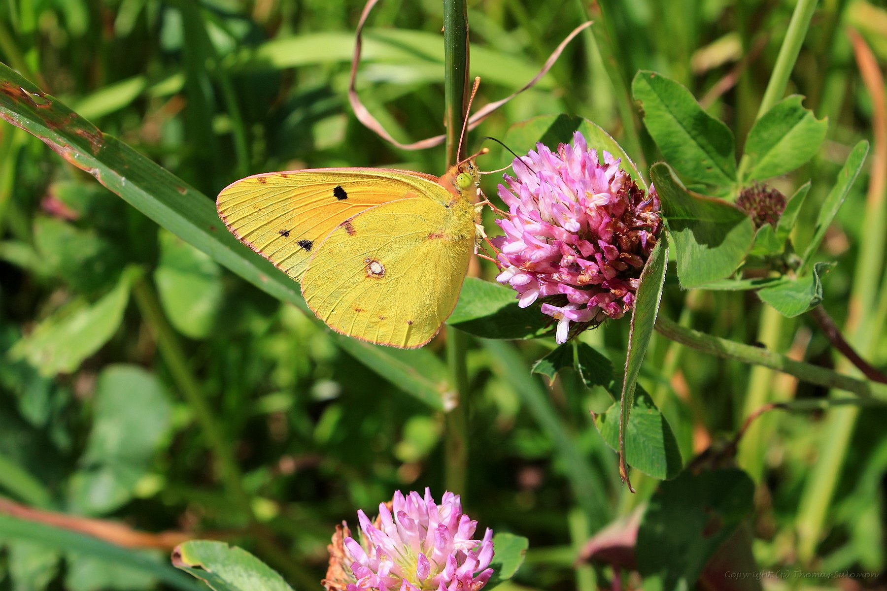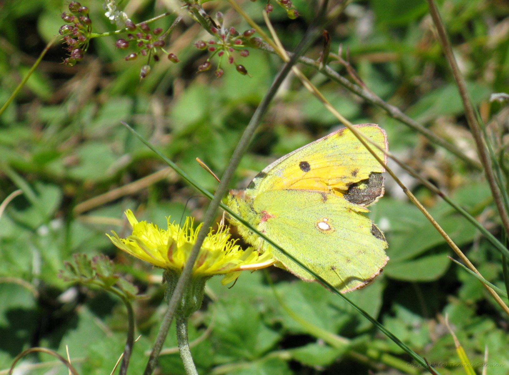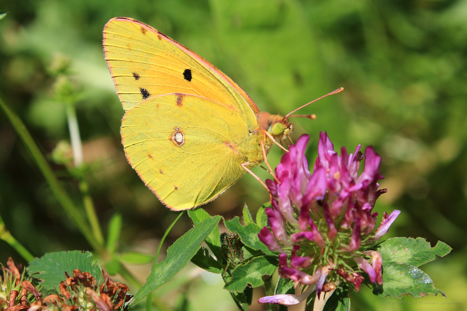 Der Postillon (Colias croceus) - einer der wenigen (hiers schlechten) Bilder mit geöffneten Flügeln. |